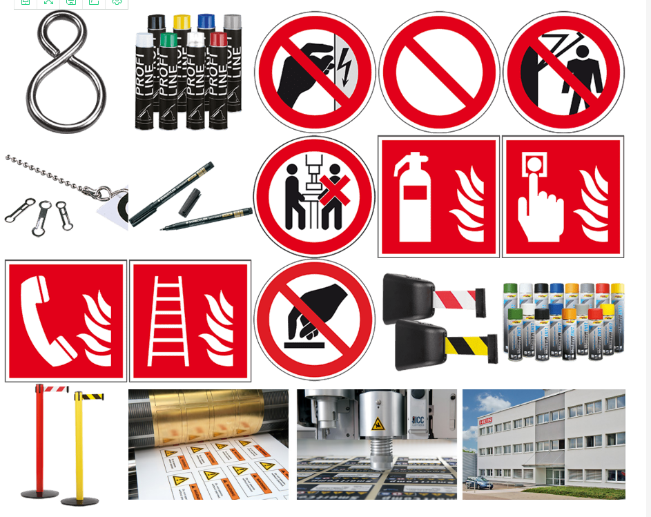 **標志、出口指示牌、檢查貼紙、消防標志、警告標志、強制性標志、管道標志、有害物質標簽、電纜測試徽章、UVV 測試板、UVV 和 VDE 檢查貼紙等