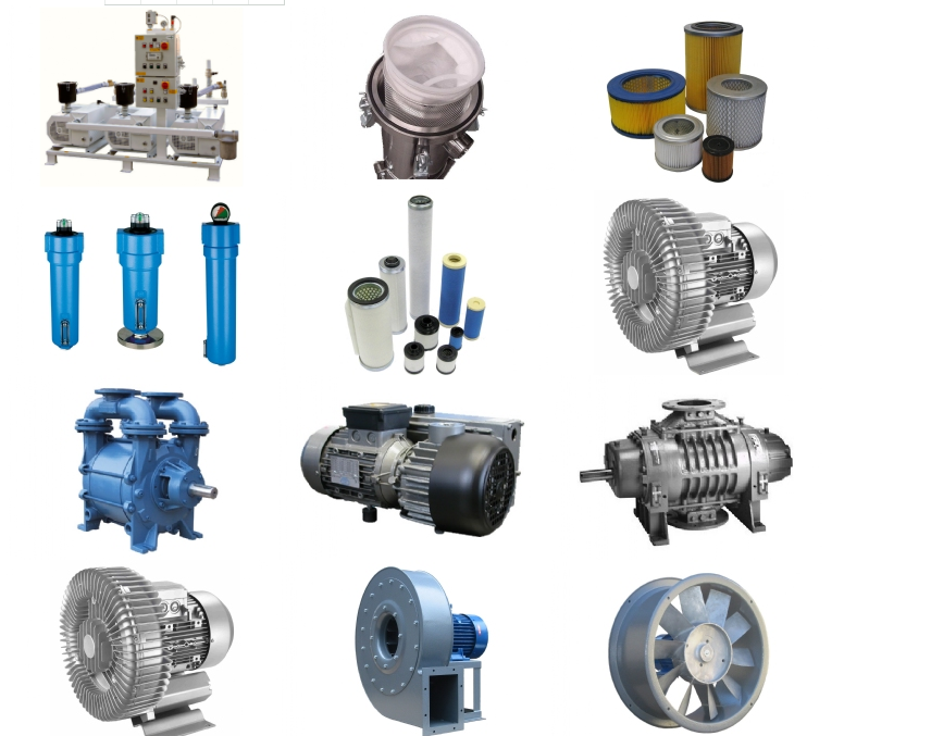 過濾器、鼓風機、真空泵、工業(yè)風扇、壓縮機、法蘭泵、真空系統(tǒng)等。